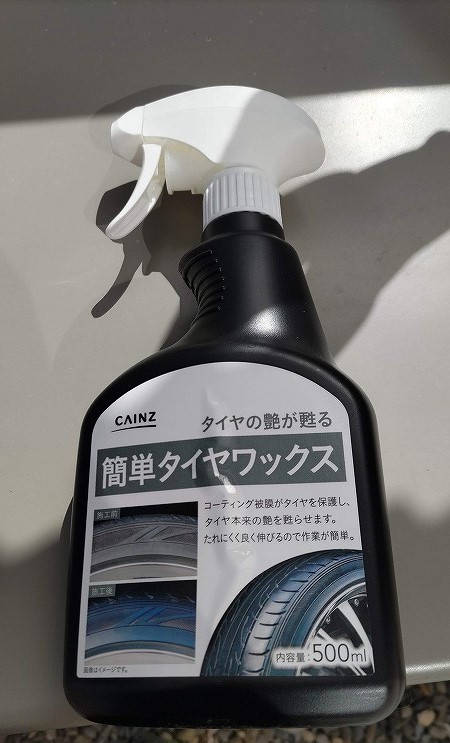 今使っているのは、カインズで売っている、業界最安値クラスのタイヤワックスです。