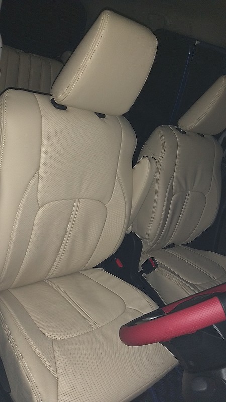 そういう時に、社外製のシートカバーってないんかな? なんて、検索すると、結構ヒットするわけで、自分はClazzio(クラッツィオ)のシートカバーを買いました。 受注生産で、納期が、1〜2カ月ぐらいかかるので、新車を注文したら直ぐに手配しないと、納車に間に合わないのが、ちと難ですね。 上の箱は、楽天で購入して、フロアマットが送られてきたときの箱です。 ちょっと大きめですが、そんなに邪魔になるサイズではない。 (写真は、クリックすると大きくなります。) 今回、ソリオ MA26S の時に購入したシートカバー 品名:リアルレザーを紹介します。 本革シートで、購入価格は、5ま円前後だったと記憶♪♪♪ 国産の Clazzio(クラッツィオ)さんのものです。 Clazzioさんの製品には、本革仕様以外にも数種類の商品があります。 たしか、メーカーオプションのものは、合皮だったような気がします。同程度の値段で、本革仕様なら、自分で取り付けても、満足感大ですね・・・