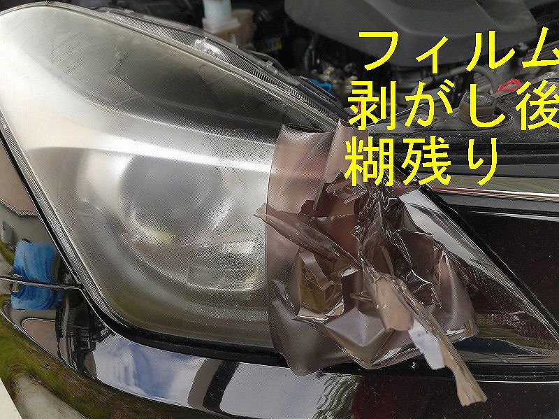 (写真は、クリックすると大きくなります。) ということで、研磨は嫌な人にお勧めするのが、ヘッドライト保護フィルム、時として、ヘッドライトプロテクションフィルムという人もいます。 最近は、ショップでも施工してくれますね。金額は、1万円超えると思いますが・・・ 上の画像は、自分のサブ車のヘッドライトで、1年前にプロテクションフィルムを貼ったものです。 1年前に張った商品はコレ 1年経ったので剥がしてみました。 作業前 フィルムは劣化してません♪♪♪ 艶テカ
