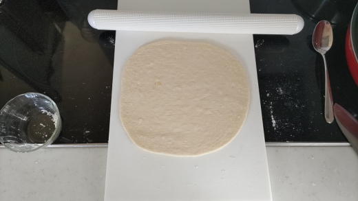 | 麺棒で延ばした状態 こんな感じや〜 |