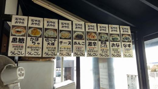 下に、店内のメニューを掲載しましたが、リピートする理由の一つとして、種類が多いことがあげられます。 他の灰焼きの店は、多くても5種類ってところでしょうか・・・。 さらに、さらに、さらに、こちらのお店には、『激辛』 があります。 これキムチ入りなんですが、はまっったら、半年に1回ぐらいリピートしたくなります♪♪♪