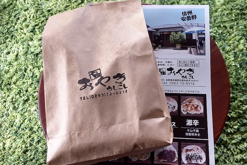 購入したおやきは、紙袋に入れてくれます。(この辺は、灰焼きと同じ)