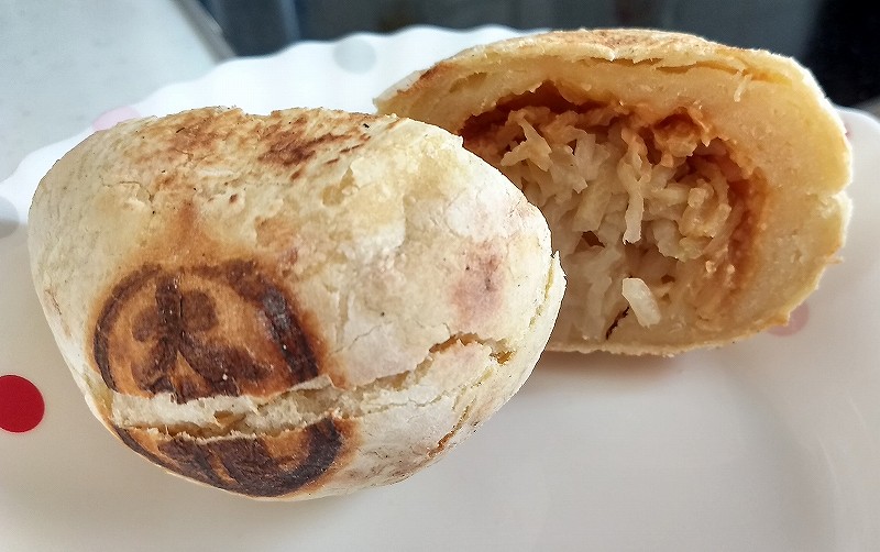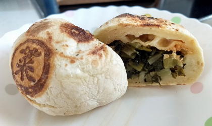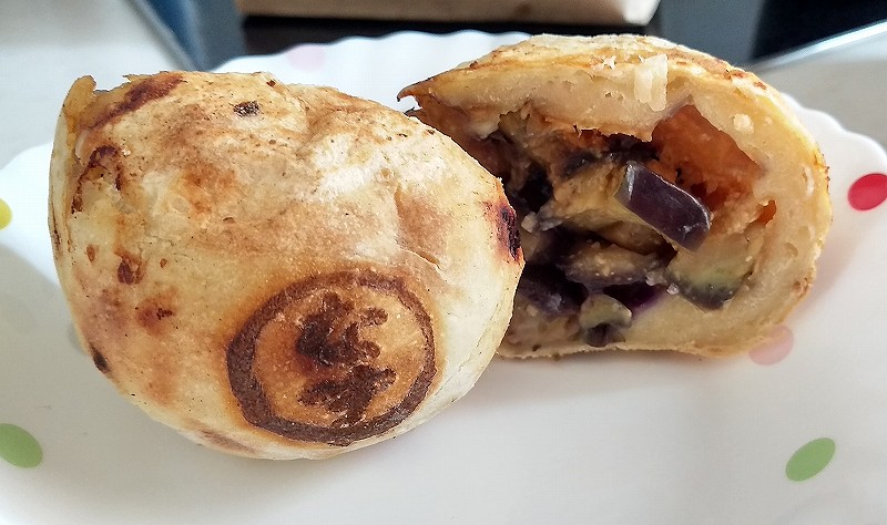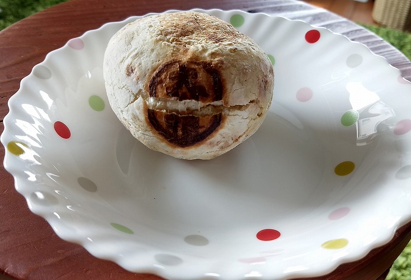 こちらのおやきは、『石焼き』です。 おやきの中の古典、『灰焼き』に近い出来上がりになります。 生地の厚さ、固さ、具の入れ方、正直、食べる側の立場でいうと、『石焼き』、『灰焼き』の差がわかりません。 食感も、近いです。 自分の中では、『石焼き』、『灰焼き』の作り方の差があっても、同じ土俵で比べてます。