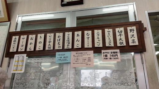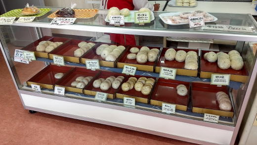 こじんまりとしたショーケース一つに、おやきが並んでます。