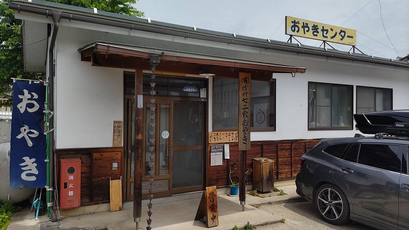 国道から細い路地に入って、おやき屋の前にくると沢山の車があった♪♪♪ かなりの人気店のようだ・・・。