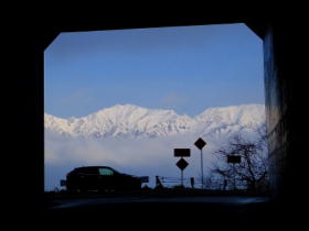 トンネルの外から撮影♪♪♪ 山は日が当たってますが、車は日陰
