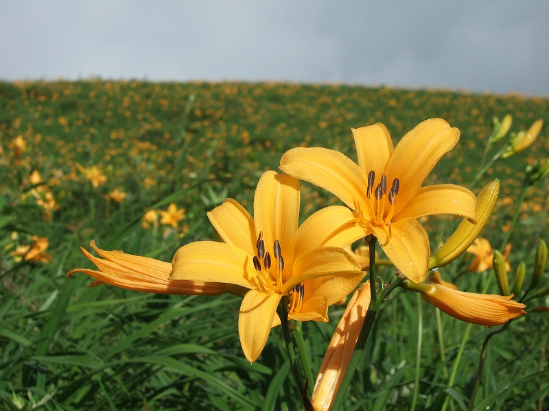 ニッコウキスゲと言えば、霧降高原(栃木県)や、雄国沼(福島県)が有名ですが、それに劣らぬ魅力の絶景は、霧ヶ峰からほど近い、車山にあります。 2020年頃には鹿にやられてしまい、その数は減ってしまいましたが、以前は、ニッコウキスゲの黄色いじゅうたんが一面に拡がりました。現在は、車山肩というところを中心に、鹿から保護されたエリアで、ニッコウキスゲが一面にみることができます。例年だと、7月20日頃、期間にして1週間ほど楽しむことができます。