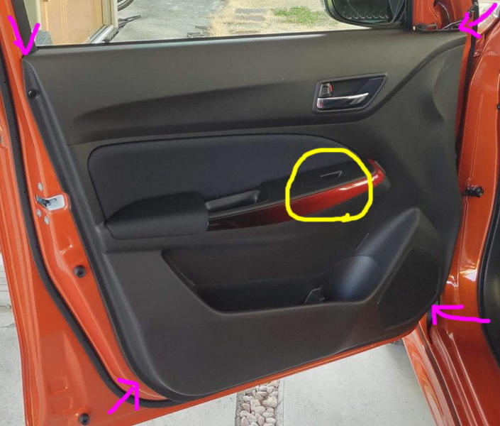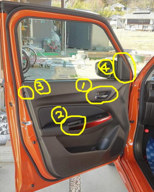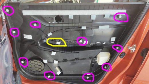−下の写真の内張りを外します。(手順は、次の写真に示します。)