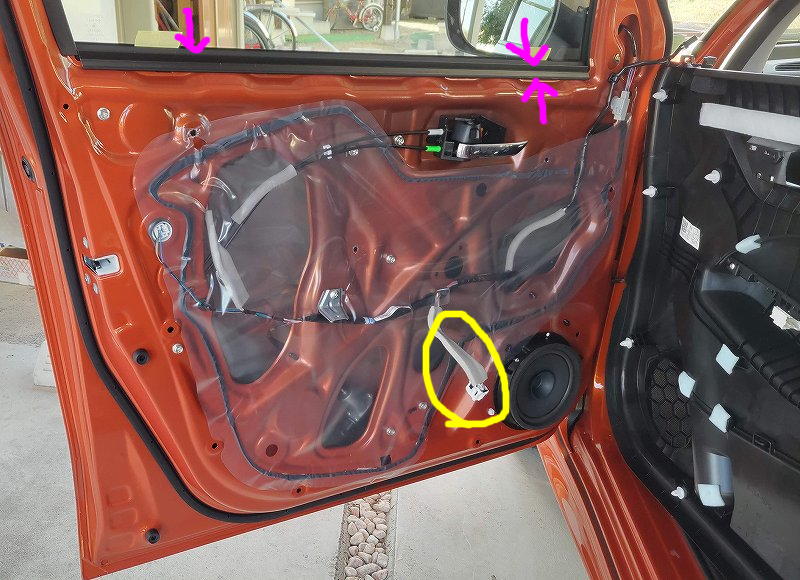 ちなみにカバーはツイーター線でドアと繋がっているので、一気に外さず、ちょっと隙間を作って、コネクタを抜いてください。